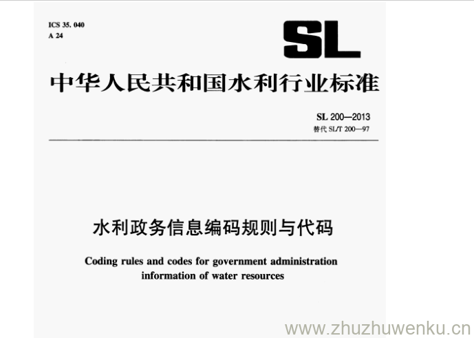 SL 200-2013 pdf下载 水利政务信息编码规则与代码。Coding rules and codes for government administration information of water resources.