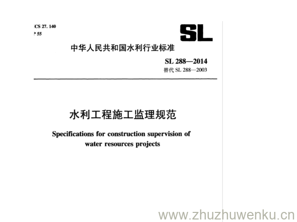 SL 288-2014 pdf下载 水利工程施工监理规范。Specifications for construction supervision of water resources projects.
