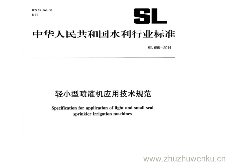 SL 698-2014 pdf下载 轻小型喷灌机应用技术规范。Specification for application of light and small scal sprinkler irrigation machines.