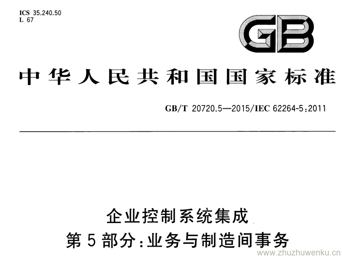 GB/T 20720.5-2015 pdf下载 企业控制系统集成 第5部分:业务与制造间事务