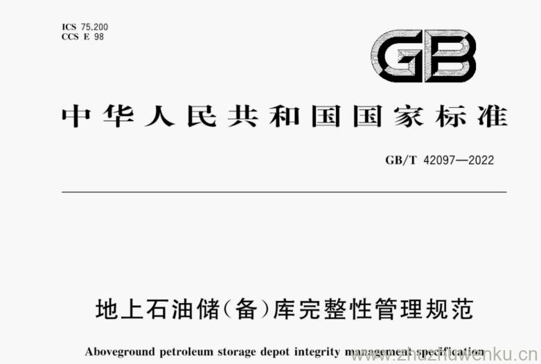 GB/T 42097-2022 pdf下载 地上石油储(备)库完整性管理规范。Aboveground petroleum storage depot integrity management specification.