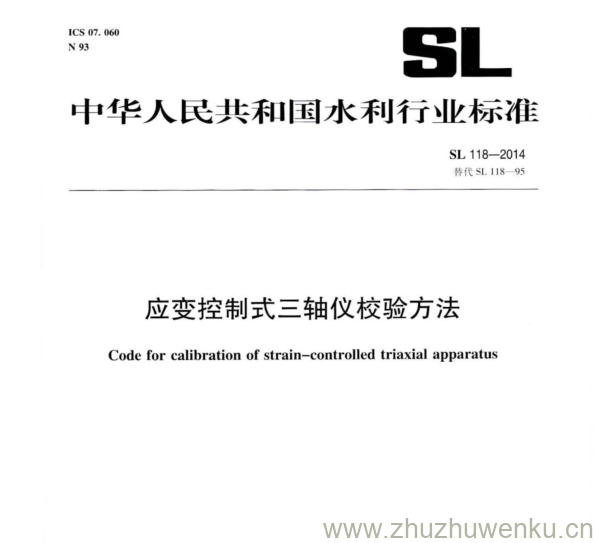 SL 118-2014 pdf下载 应变控制式三轴仪校验方法。Code for calibration of strain-controlled triaxial apparatus.