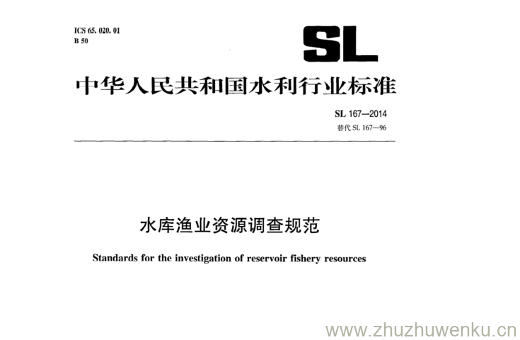 SL 167-2014 pdf下载 水库渔业资源调查规范。Standards for the investigation of reservoir fishery resources.