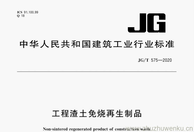 JG/T 575-2020 pdf下载 工程渣土免烧再生制品。Non-sintered regenerated product of construction waste.