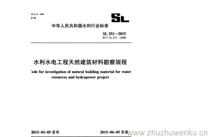 SL 251-2015 pdf下载 水利水电工程天然建筑材料勘察规程。Code for investigation of natural building material for water resources and hydropower project.