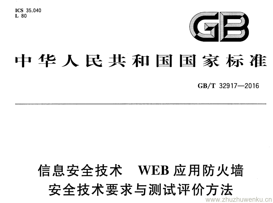 GB/T 32917-2016 pdf下载 信息安全技术 WEB应用防火墙 安全技术要求与测试评价方法