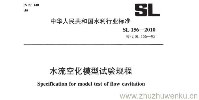 SL 156-2010 pdf下载 水流空化模型试验规程。Specification for model test of flow cavitation.