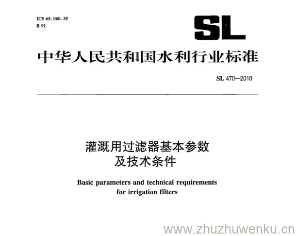 SL 470-2010 pdf下载 灌溉用过滤器基本参数 及技术条件。Basic parameters and technical requirements for irrigation filters.