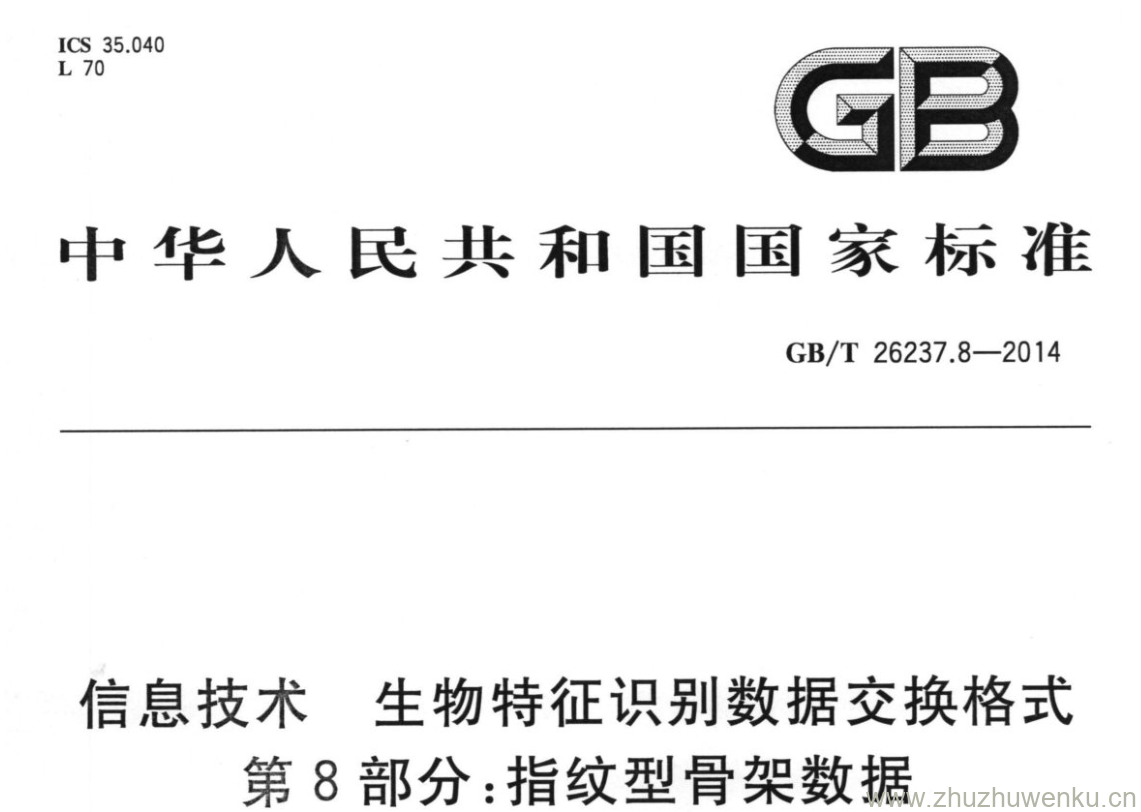 GB/T 26237.8-2014 pdf下载 信息技术 生物特征识别数据交换格式 第8部分:指纹型骨架数据
