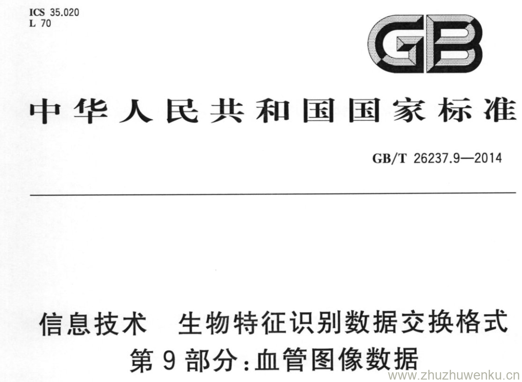 GB/T 26237.9-2014 pdf下载 信息技术 生物特征识别数据交换格式 第9部分:血管图像数据