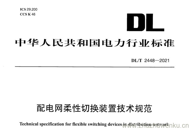 DL/T 2448-2021 pdf下载 配电网柔性切换装置技术规范。Technical specification for flexible switching devices in distribution network.