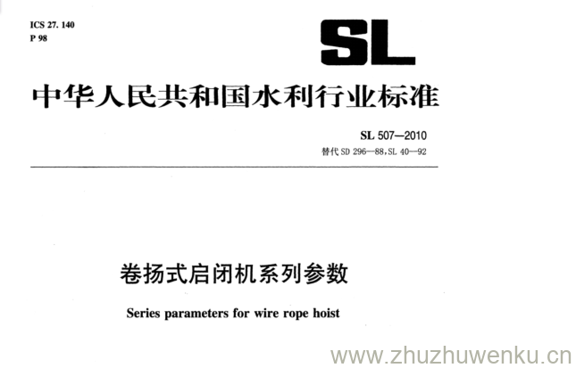 SL 507-2010 pdf下载 卷扬式启闭机系列参数