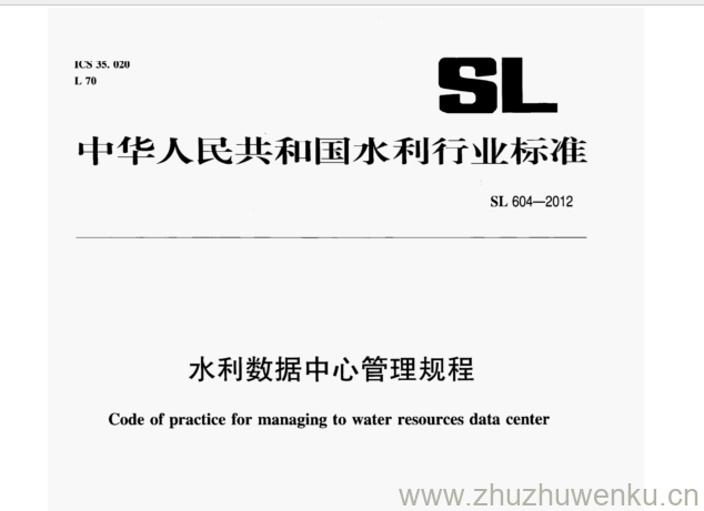SL 604-2012 pdf下载 水利数据中心管理规程。Code of practice for managing to water resources data center.