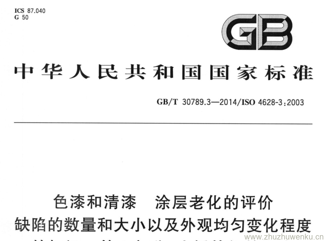 GB/T 30789.3-2014 pdf下载 色漆和清漆涂层老化的评价 缺陷的数量和大小以及外观均匀变化程度的标识 第3部分:生锈等级的评定