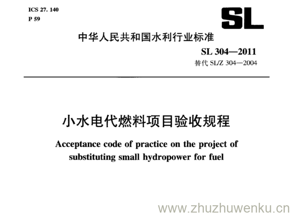SL 304-2011 pdf下载 小水电代燃料项目验收规程。Acceptance code of practice on the project of substituting small hydropower for fuel.