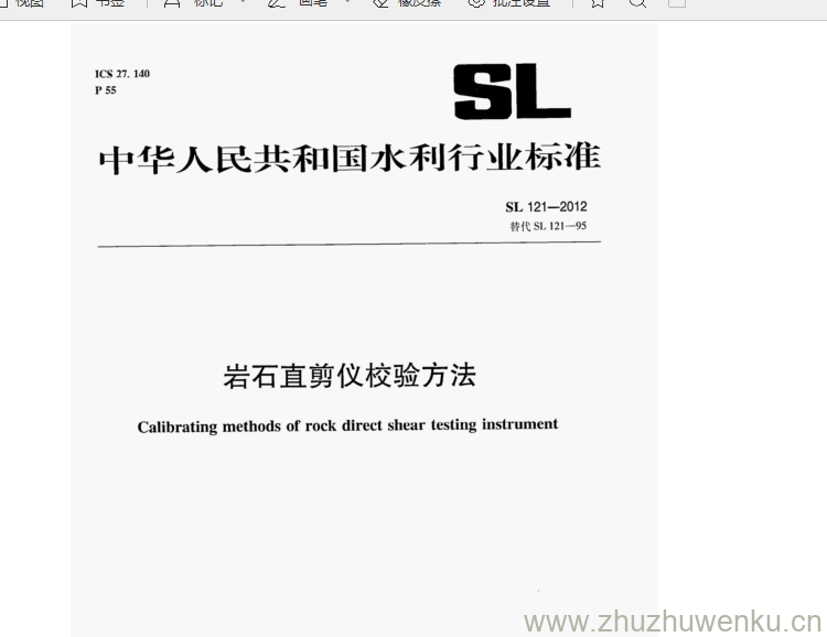 SL 121-2012 pdf下载 岩石直剪仪校验方法。Calibrating methods of rock direct shear testing instrument.