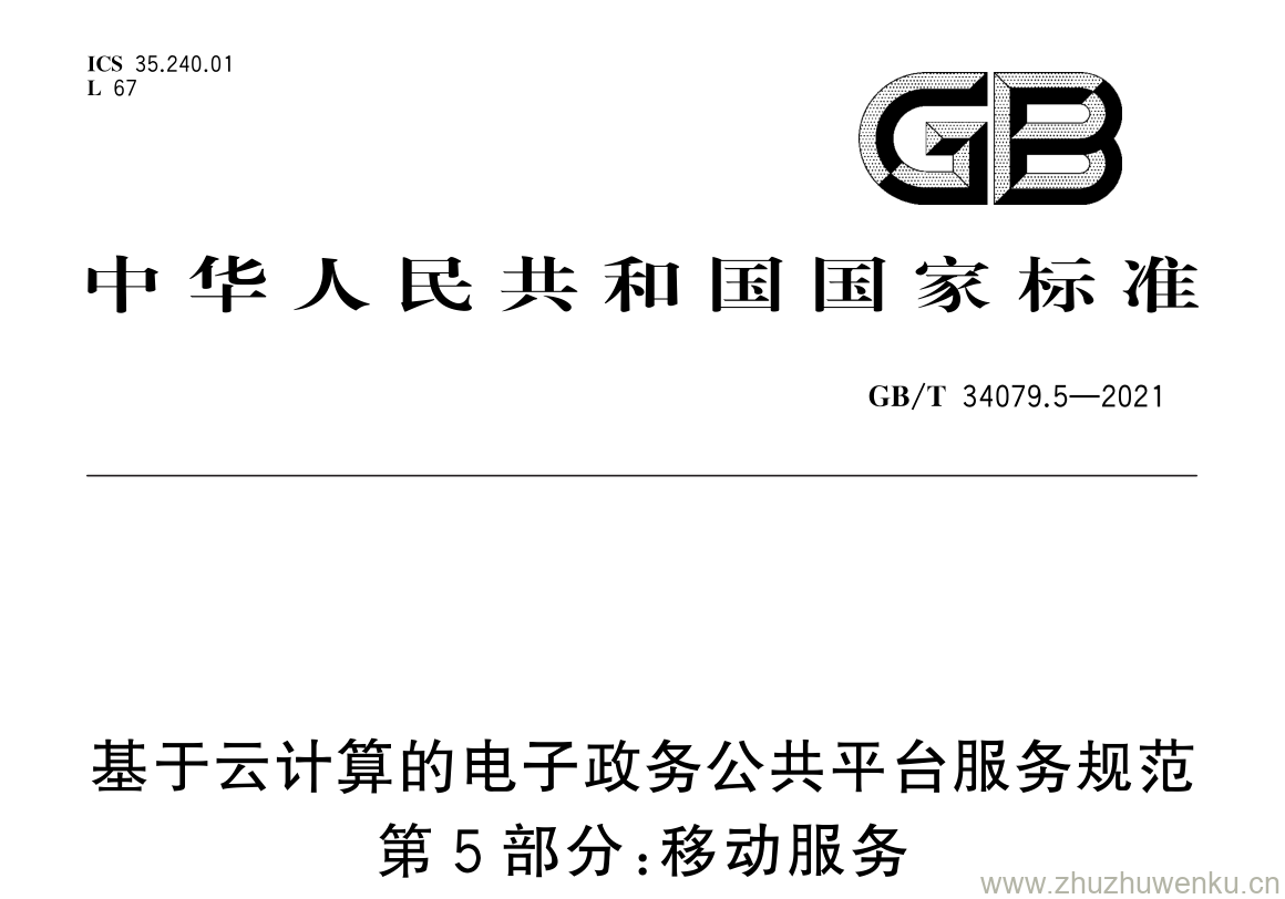 GB / T34079 的本部分规定了基于云计算的电子政务公共平台 支持移动服务的技术要求, 包括总体框架、终端、安全信道、移动安全网关、服务端管理、移动政务应用、安全要求和计量要求方面的内容。