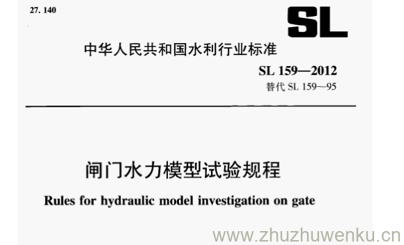 SL 159-2012 pdf下载 闸门水力模型试验规程。Rules for hydraulic model investigation on gate.