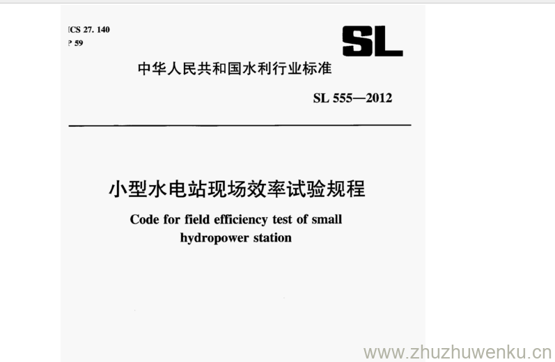 SL 555-2012 pdf下载 小型水电站现场效率试验规程。Code for field efficiency test of small hydropower station.