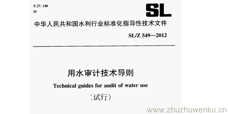 SL/Z 549-2012 pdf下载 用水审计技术导则。Technical guides for audit of water use.