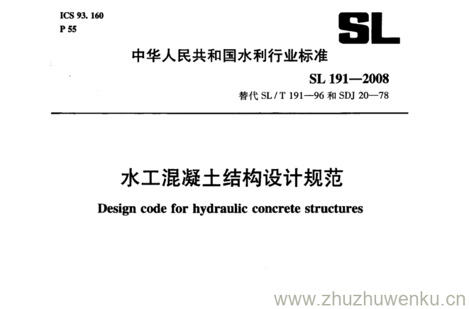 SL 191-2008 pdf下载 水工混凝土结构设计规范。Design code for hydraulic concrete structures.