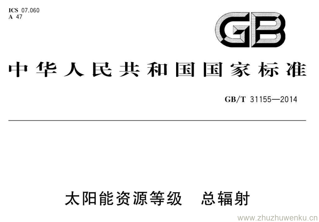 GB/T 31155-2014 pdf下载 太阳能资源等级 总辐射