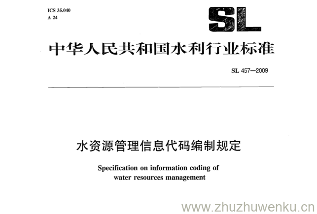 SL 457-2009 pdf下载 水资源管理信息代码编制规定。Specification on information coding of water resources management.