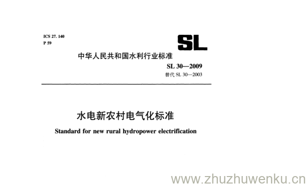 SL 30-2009 pdf下载 水电新农村电气化标准。Standard for new rural hydropower electrification.