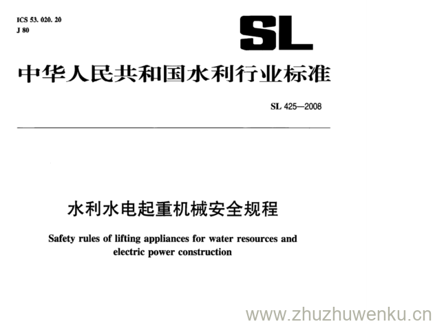 SL 425-2008 pdf下载 水利水电起重机械安全规程。Safety rules of lifting appliances for water resources and electric power construction.