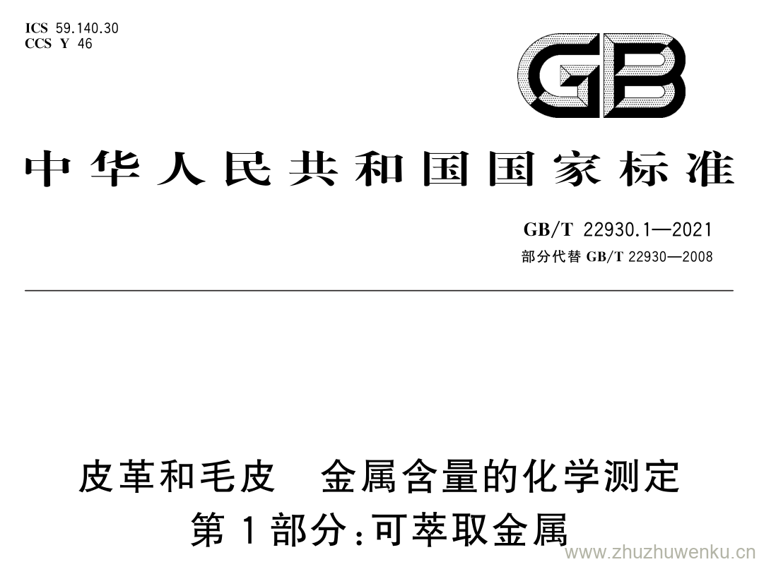 GB/T 22930.1-2021 pdf 下载皮革和毛皮 金属含量的化学测定 第 1 部分: 可萃取金属
