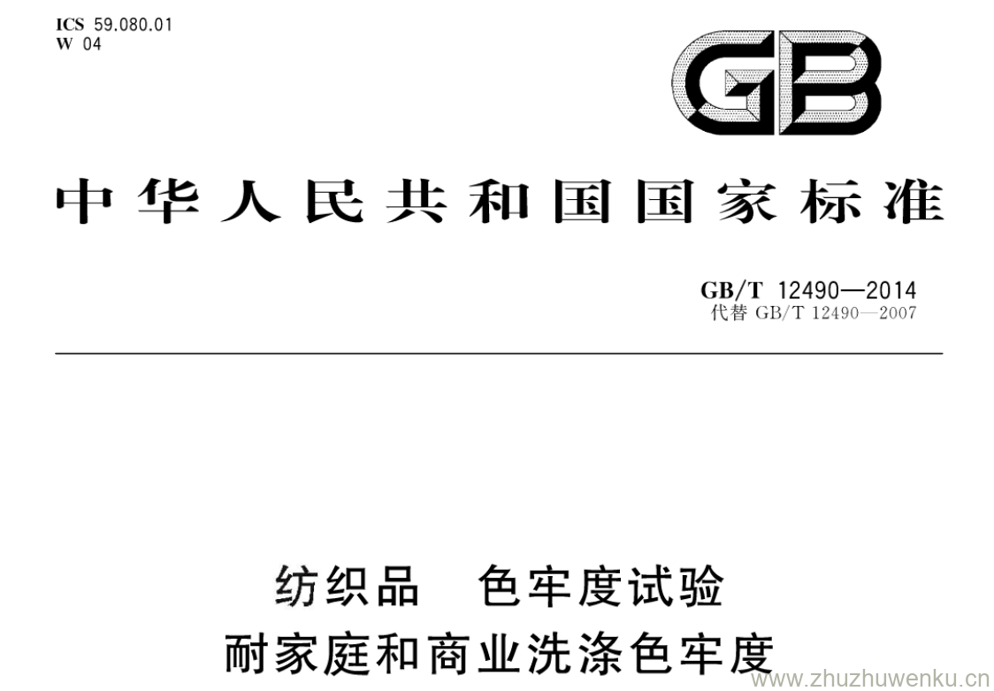 GB/T 12490-2014 pdf下载 纺织品 色牢度试验 耐家庭和商业洗涤色牢度