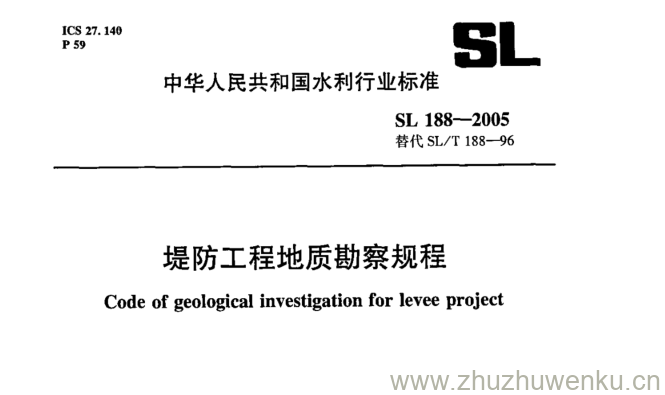 SL 188-2005 pdf下载 堤防工程地质勘察规程。Code of geological investigation for levee project.