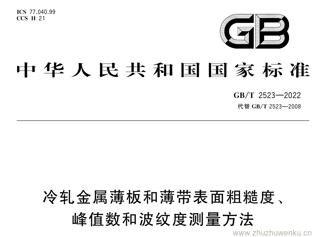 GB/T 2523-2022 pdf 下载冷轧金属薄板和薄带表面粗糙度、 峰值数和波纹度测量方法