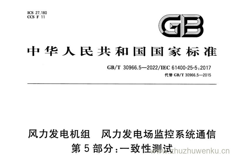 GB/T 30966.5-2022 pdf下载 风力发电机组 风力发电场监控系统通信 第5部分:一致性测试。