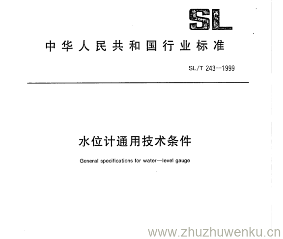 SL 243-1999 pdf下载 水位计通用技术条件。General specifications for water-level gauge.