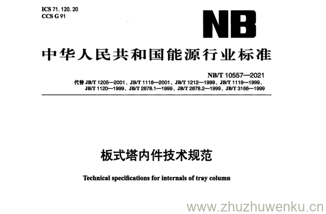 NB/T 10557-2021 pdf下载 板式塔内件技术规范。Technical specifications for internals of tray column.