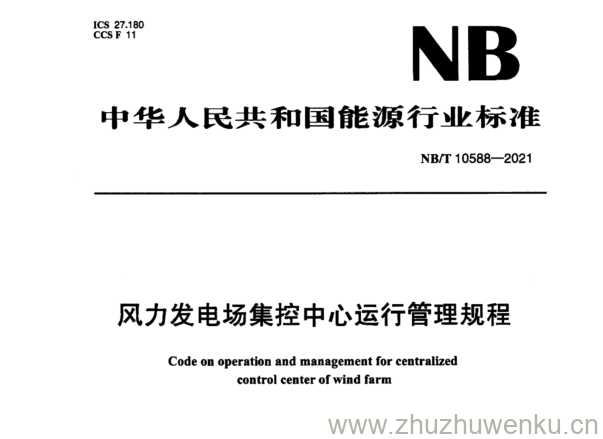 NB/T 10588-2021 pdf下载 风力发电场集控中心运行管理规程。Code on operation and management for centralized control center of wind farm.