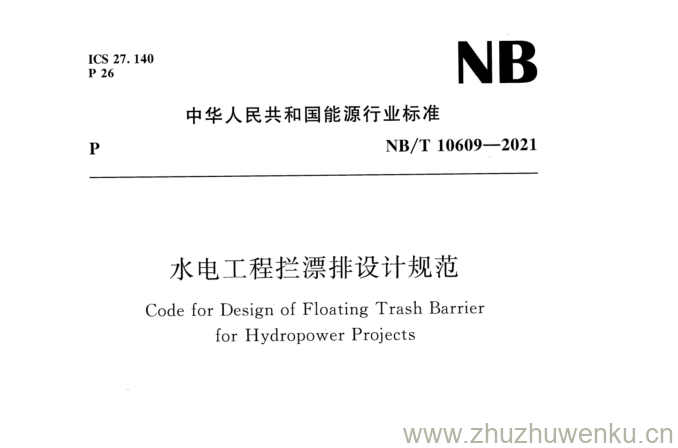NB/T 10609-2021 pdf下载 水电工程拦漂排设计规范。Code for Design of Floating Trash Barrier for Hydropower Projects.