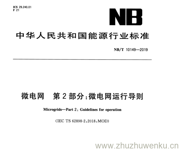 NB/T 10149-2019 pdf下载 微电网第2部分:微电网运行导则。Microgrids-Part 2:Guidelines for operation (IECTS62898-2:2018,MOD).