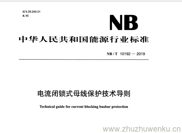 NB/T 10192-2019 pdf下载 电流闭锁式母线保护技术导则。Technical guide for current blocking busbar protection.