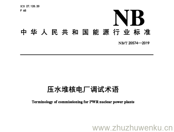 NB/T 20574-2019 pdf下载 压水堆核电厂调试术语。Terminology of commissioning for PWR nuclear power plants.