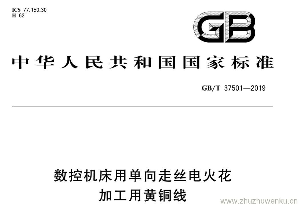 GB/T 37501-2019 pdf下载 数控机床用单向走丝电火花 加工用黄铜线