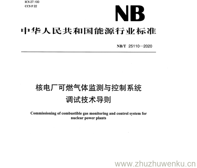 NB/T 25110-2020 pdf下载 核电厂可燃气体监测与控制系统 调试技术导则。Commissioning of combustible gas monitoring and control system for nuclear power plants.