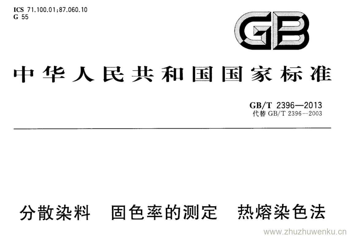 GB/T 2396-2013 pdf下载 分散染料 固色率的测定 热熔染色法