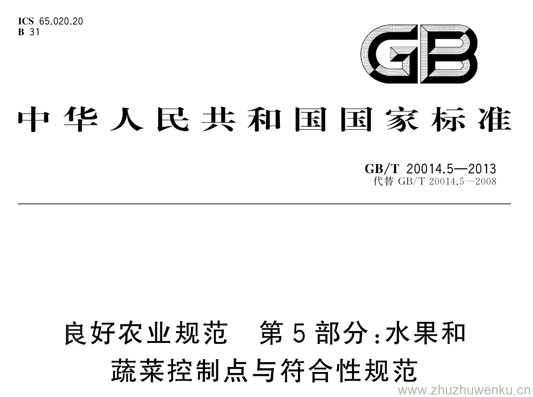 GB/T 20014.5-2013 pdf下载 良好农业规范 第 5 部分: 水果和蔬菜控制点与符合性规范