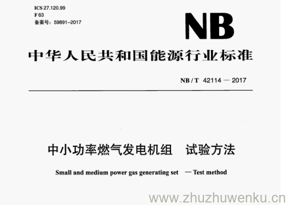 NB/T 42114-2017 pdf下载 中小功率燃气发电机组试验方法