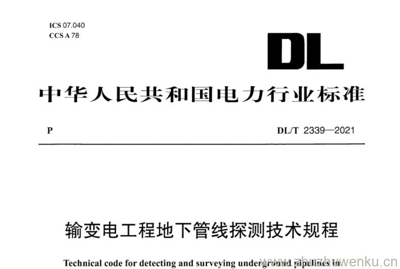 DL∕T 2339-2021 pdf下载 输变电工程地下管线探测技术规程。Technical code for detecting and surveying underground pipelines in transmission and transformation engineering.