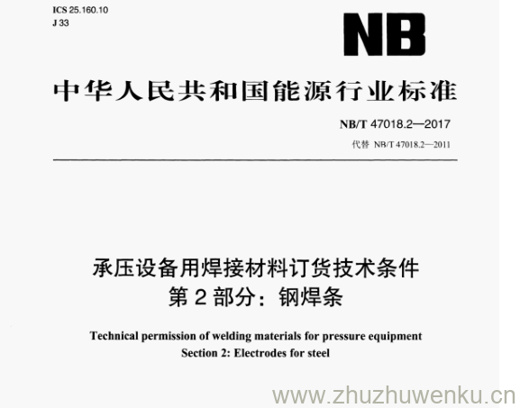 NB/T 47018.2-2017 pdf下载 承压设备用焊接材料订货技术条件 第2部分:钢焊条。Technical permission of welding materials for pressure equipment Section2: Electrodesforsteel.