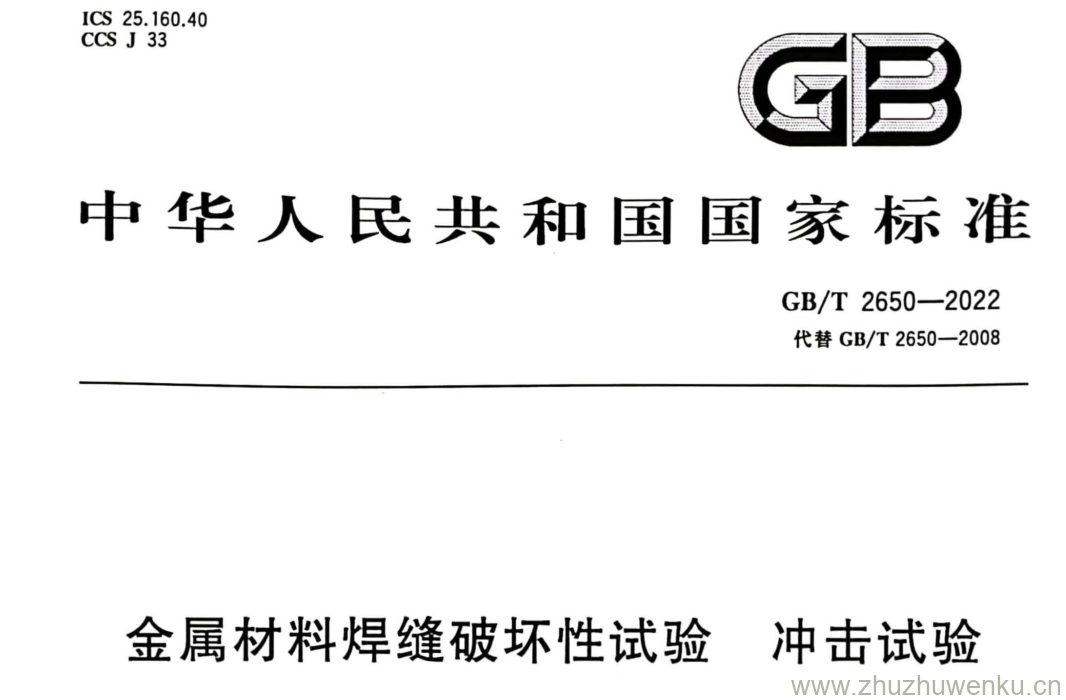 GB/T 2650-2022 pdf 下载金属材料焊缝破坏性试验 冲击试验