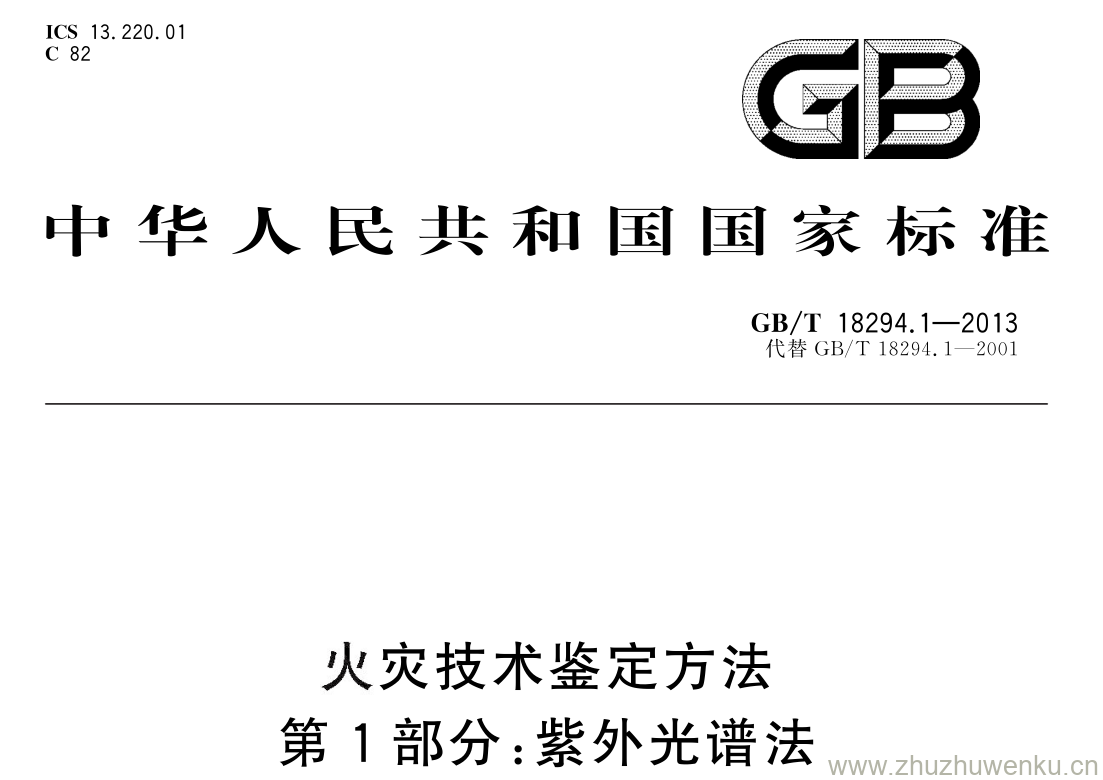 GB/T 18294.1-2013 pdf下载 火灾技术鉴定方法 第 1 部分: 紫外光谱法